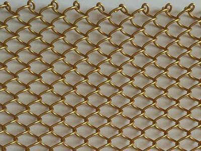 金属装饰网是由金属棒材或金属缆线编织构成的,按照织物的编织方法,由横向金属棒材穿过竖向金属缆线构成的各种图像。还有表面通过处理如镀金、镀银、镀钛、镀锡等元素后出现出各种其他色彩。